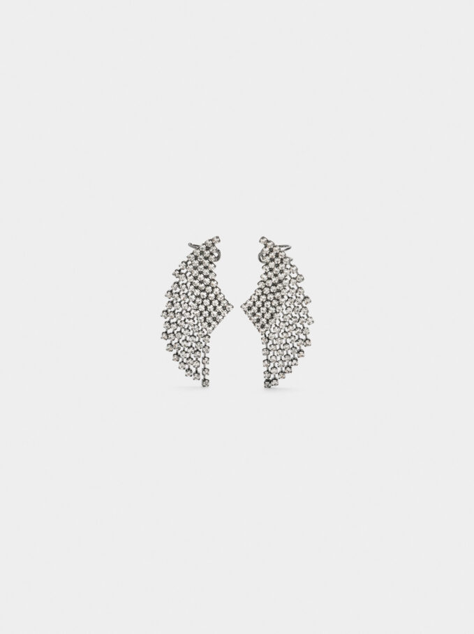 עגילי EarJacket בצורת כנפיים עם קריסטלים. גודל בינוני. גימור כסף מושחר.
